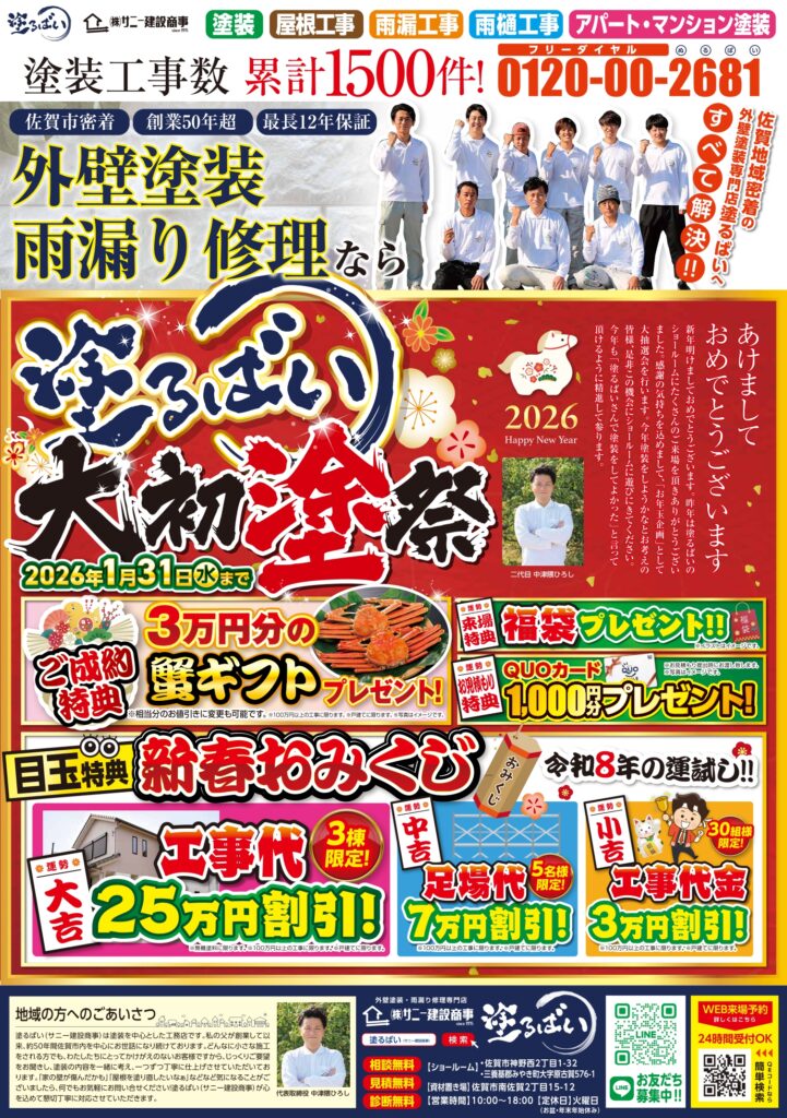 【2026年新春】大初売祭 開催中!|外壁塗装・雨漏り修理なら「塗るばい」へ!